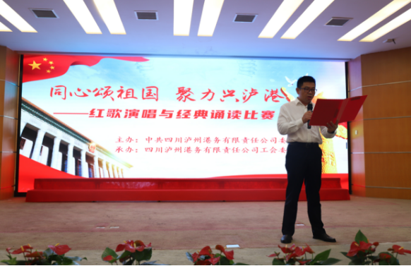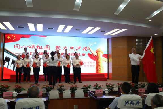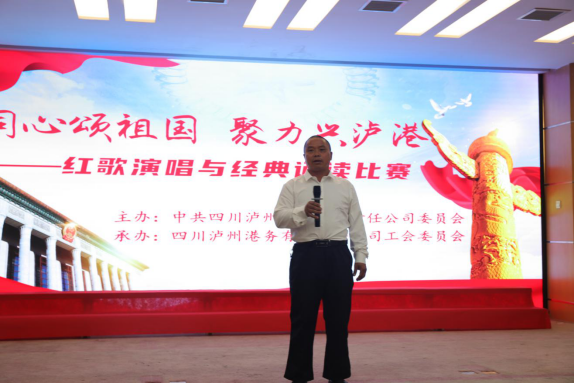 ? ? ? “紅歌演唱與經(jīng)典誦讀比賽”在大合唱中華人民共和國國歌《義勇軍進行曲》中拉開帷幕,來自瀘州港務(wù)公司和駐港船公司混編的“團結(jié)隊”“興港隊”“遠洋隊”“飛浪隊”“紅星隊”5支隊伍,獻出了《我驕傲,我是中國人》等經(jīng)典誦讀和《懷揣感恩之心,共創(chuàng)瀘州港美好明天》等精彩演講,表達了對黨、對祖國、對港口真誠祝愿和無限祈福,經(jīng)過誦讀、演講兩個環(huán)節(jié)的角逐、比拼,評選出了優(yōu)秀名次。各參賽隊員聲音嘹亮,精神飽滿,展示了蓬勃向上、團結(jié)奮進的精神風貌,贏得了現(xiàn)場領(lǐng)導(dǎo)、嘉賓及評委的一致好評。在誦讀和演講比賽兩個環(huán)節(jié)之間,活動穿插了文藝節(jié)目,口技、薩克斯獨奏、獨唱、大合唱等多種形式的文藝節(jié)目同臺競技,博得觀眾陣陣掌聲。《我的祖國》《歌唱祖國》《大中國》等一首首曲目,表達了全體瀘港人對祖國、對家鄉(xiāng)、對港口的無限熱愛之情和英雄主義氣概。