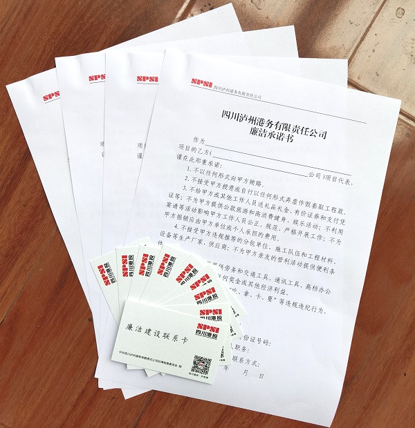 ? ? ? ?聯(lián)系卡上印制了廉潔提醒語,公布了廉潔舉報電話及郵箱,向承建方(供貨方)遞出聯(lián)系卡,也遞出了公司做好廉潔從業(yè)工作的責任擔當;廉潔承諾書向承建方(供貨方)鄭重說明了應履行的六條義務,與承建方(供貨方)簽訂承諾書,進一步延長了公司廉潔管理工作鏈條,筑牢了公司在工程建設和招采方面廉潔管理工作防線。